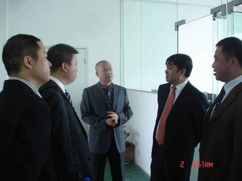 參觀生產(chǎn)部 (右一 龍神彭副總 右三 劉杰處長 左三 龍神彭總 左一 龍神蘇副總)領(lǐng)導(dǎo)合影
