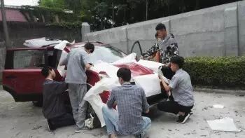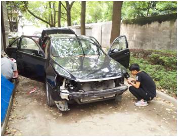 鈑噴技能教學(xué)與素質(zhì)拓展課程 鈑金技能教學(xué)——進行整車拆卸作業(yè)現(xiàn)場↓